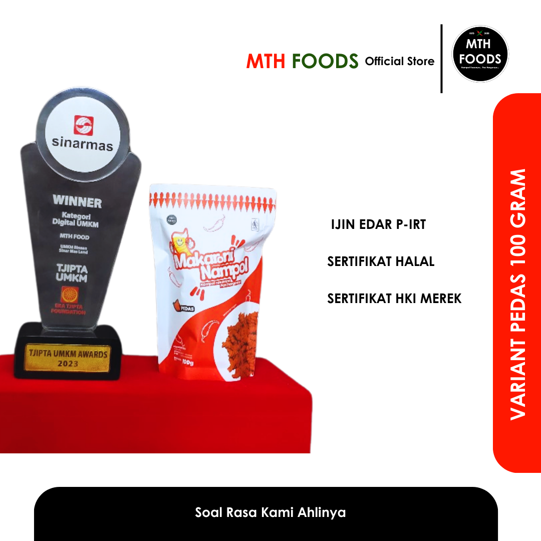 Makanan Ringan Snack Makaroni Nampol terbuat dari Makaroni dengan kualitas premium dan masak menggunakan bumbu bumbu khas menjadikannya Sebagai Snack teman minum kopi,ngeteh, makan baso, makan mie ayam, atau teman cemilan santai.